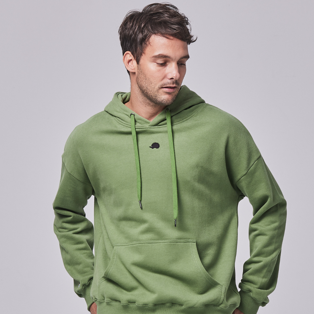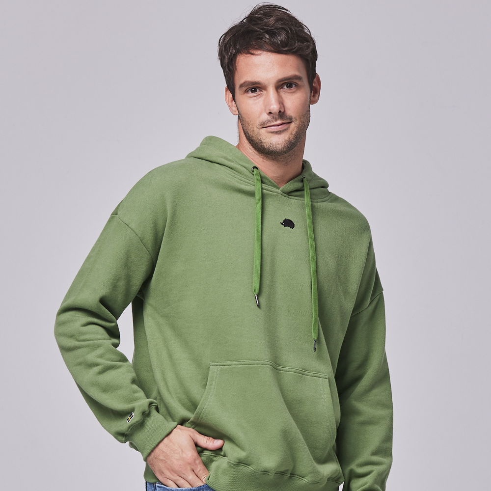 (現貨)SCANDINAVIAN FOREST北歐小刺蝟-經典電繡刺蝟雙面磨毛純棉帽T-雪松綠