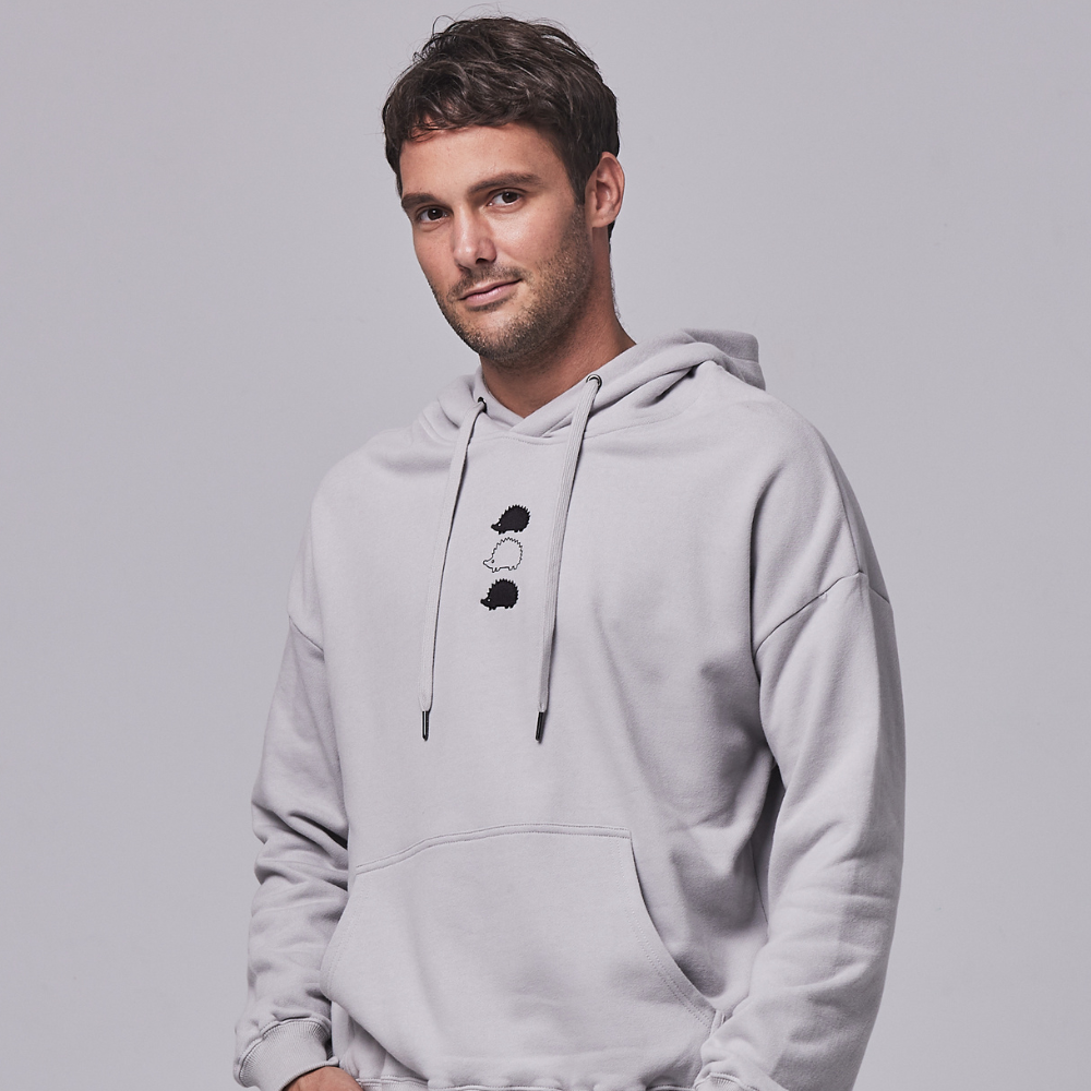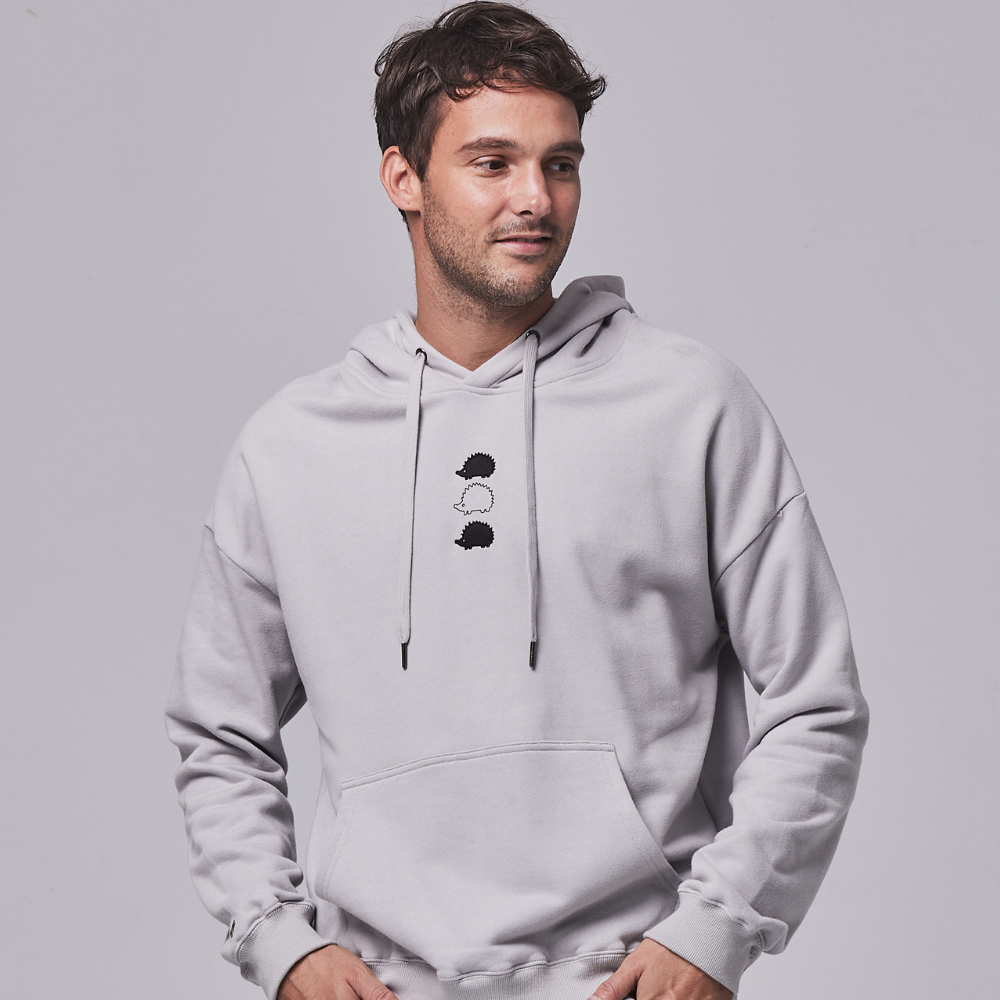 (現貨)SCANDINAVIAN FOREST北歐小刺蝟-疊疊電繡刺蝟雙面磨毛純棉帽T-水泥灰