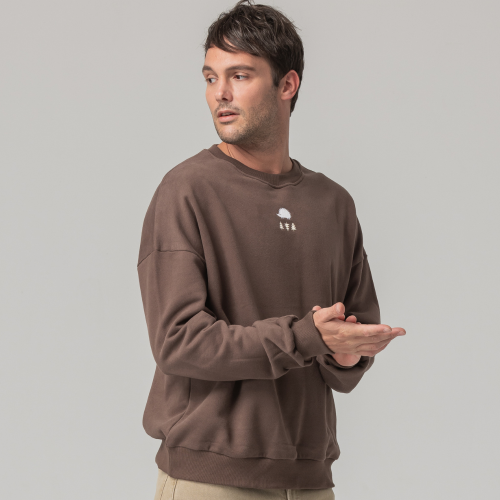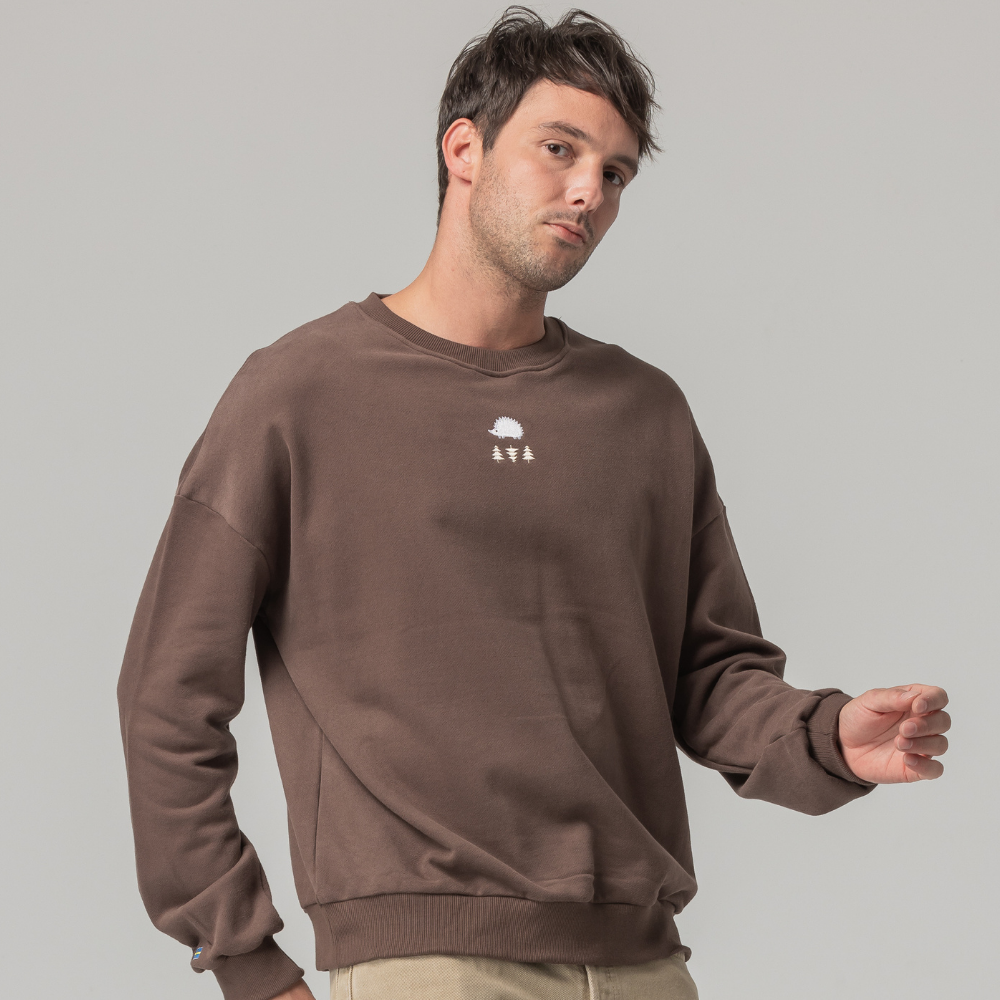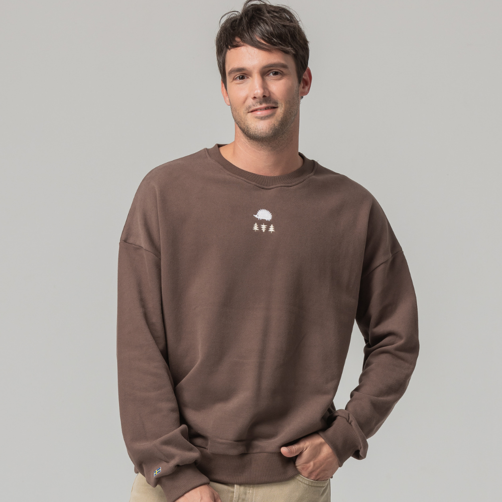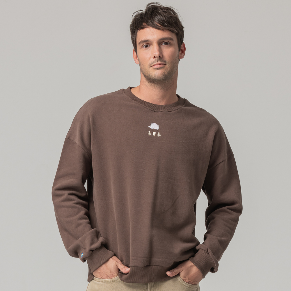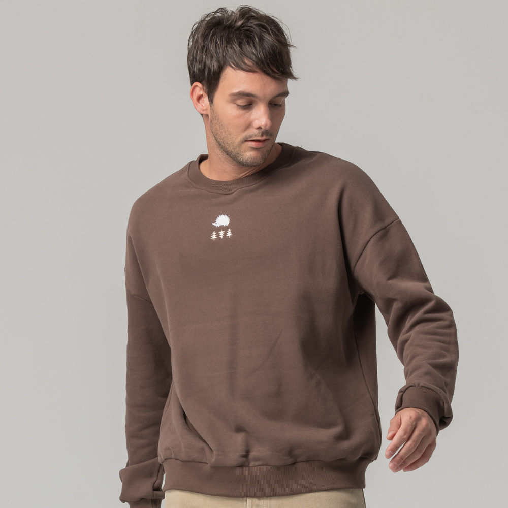 (現貨)SCANDINAVIAN FOREST北歐小刺蝟-森林電繡刺蝟雙面磨毛純棉大學T-咖啡