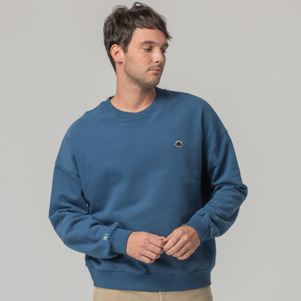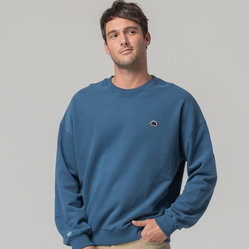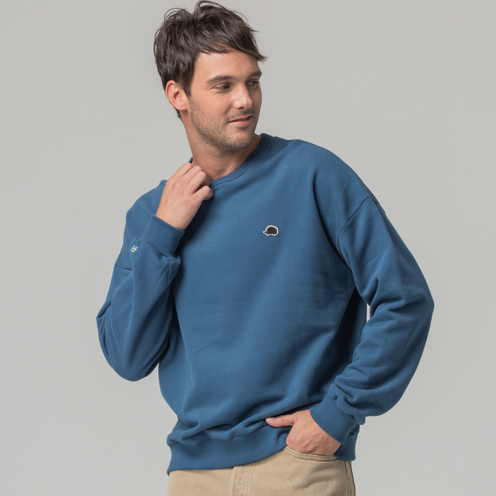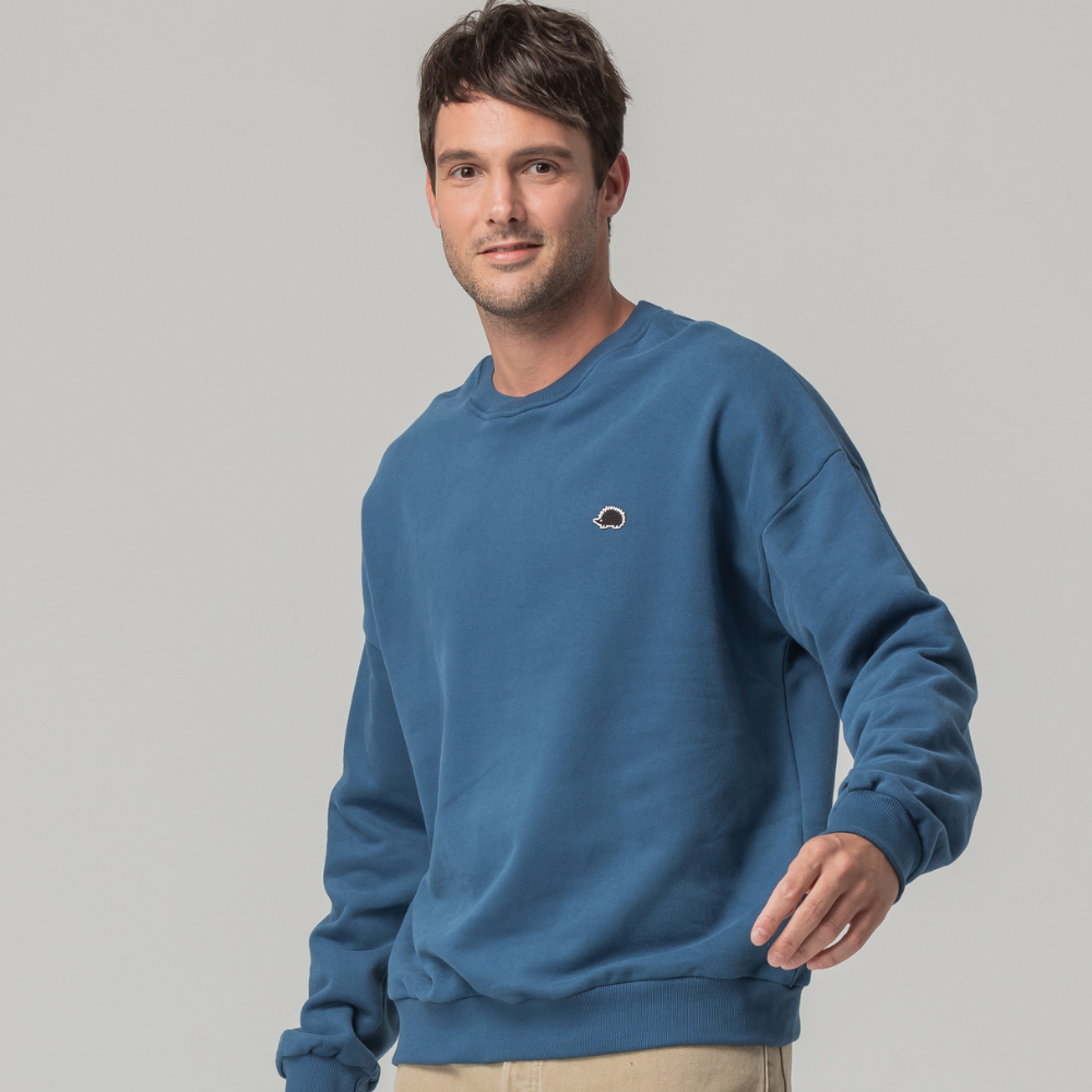 (現貨)SCANDINAVIAN FOREST北歐小刺蝟-小標繡章刺蝟雙面磨毛純棉大學T-靛藍
