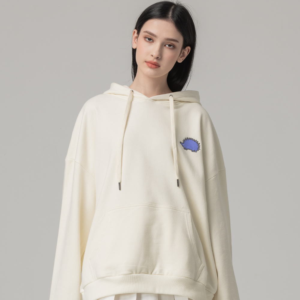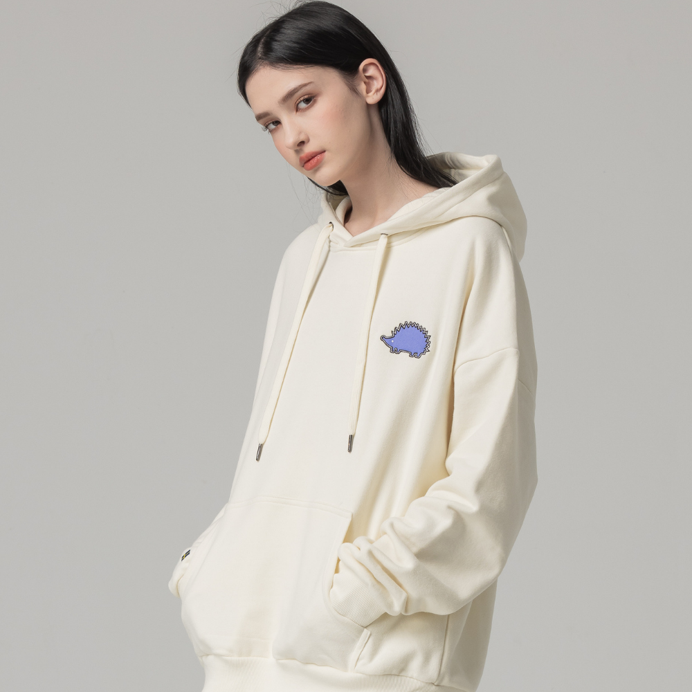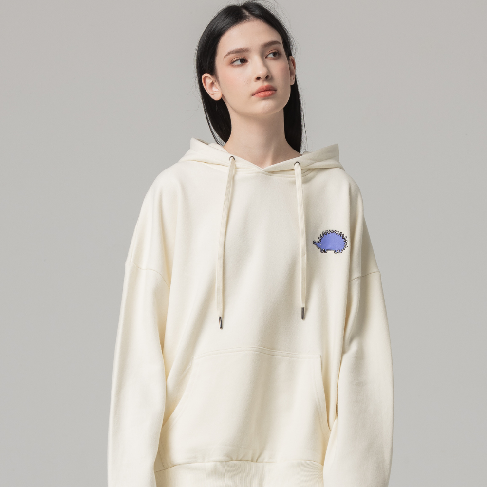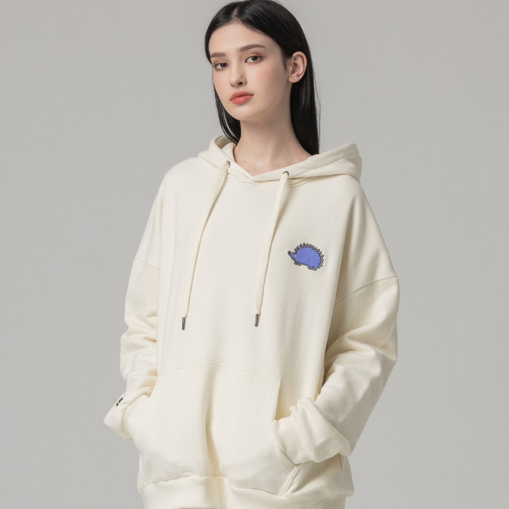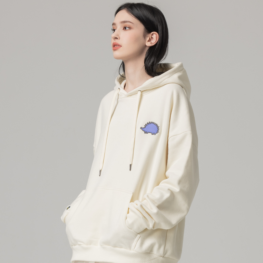 (現貨)SCANDINAVIAN FOREST北歐小刺蝟-雙層貼布繡刺蝟雙面磨毛純棉帽T-奶油白