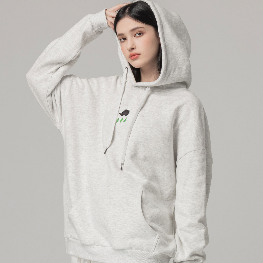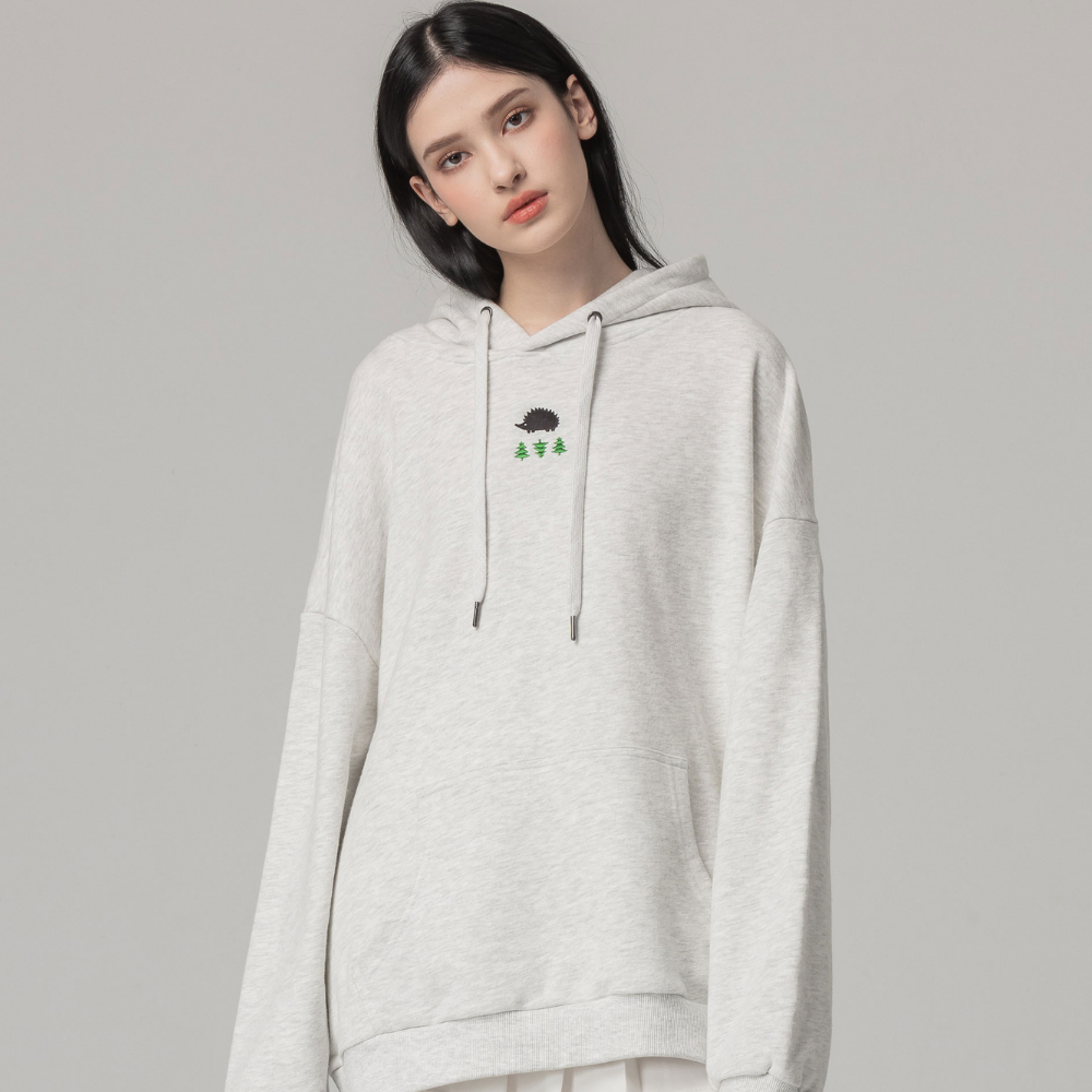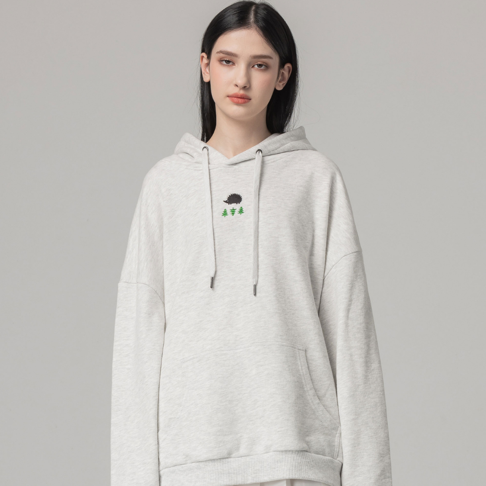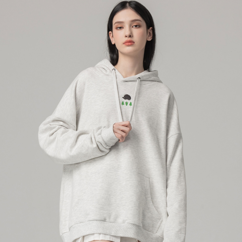 (現貨)SCANDINAVIAN FOREST北歐小刺蝟-森林電繡刺蝟雙面磨毛純棉帽T-麻灰