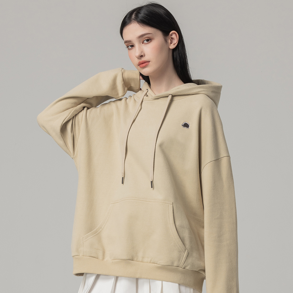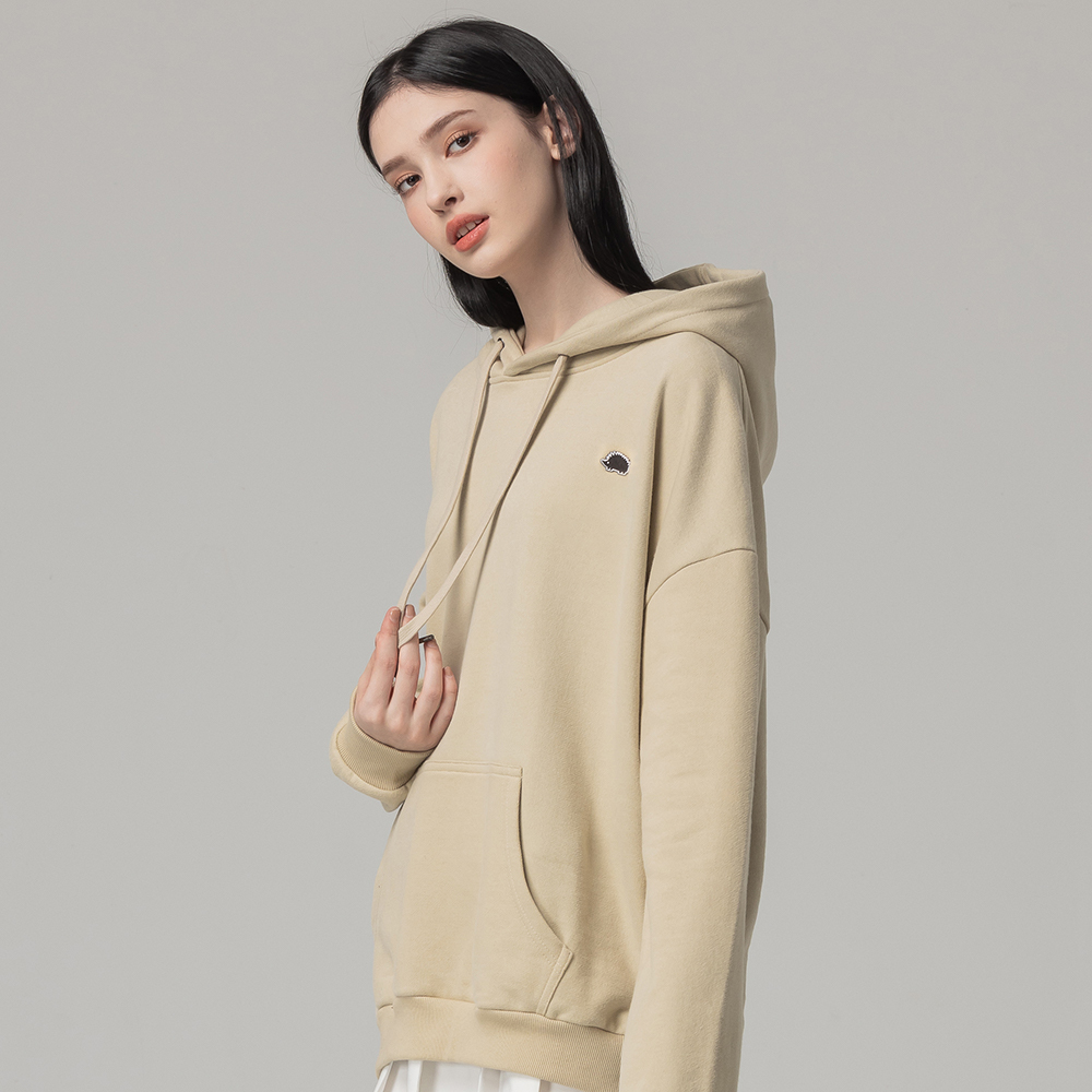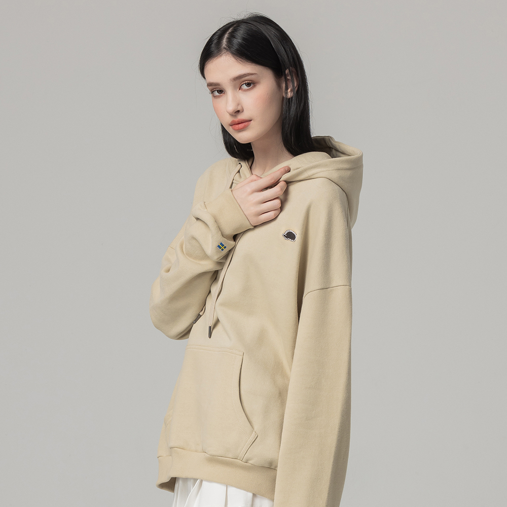 (現貨)SCANDINAVIAN FOREST北歐小刺蝟-小標繡章刺蝟雙面磨毛純棉帽T-奶茶