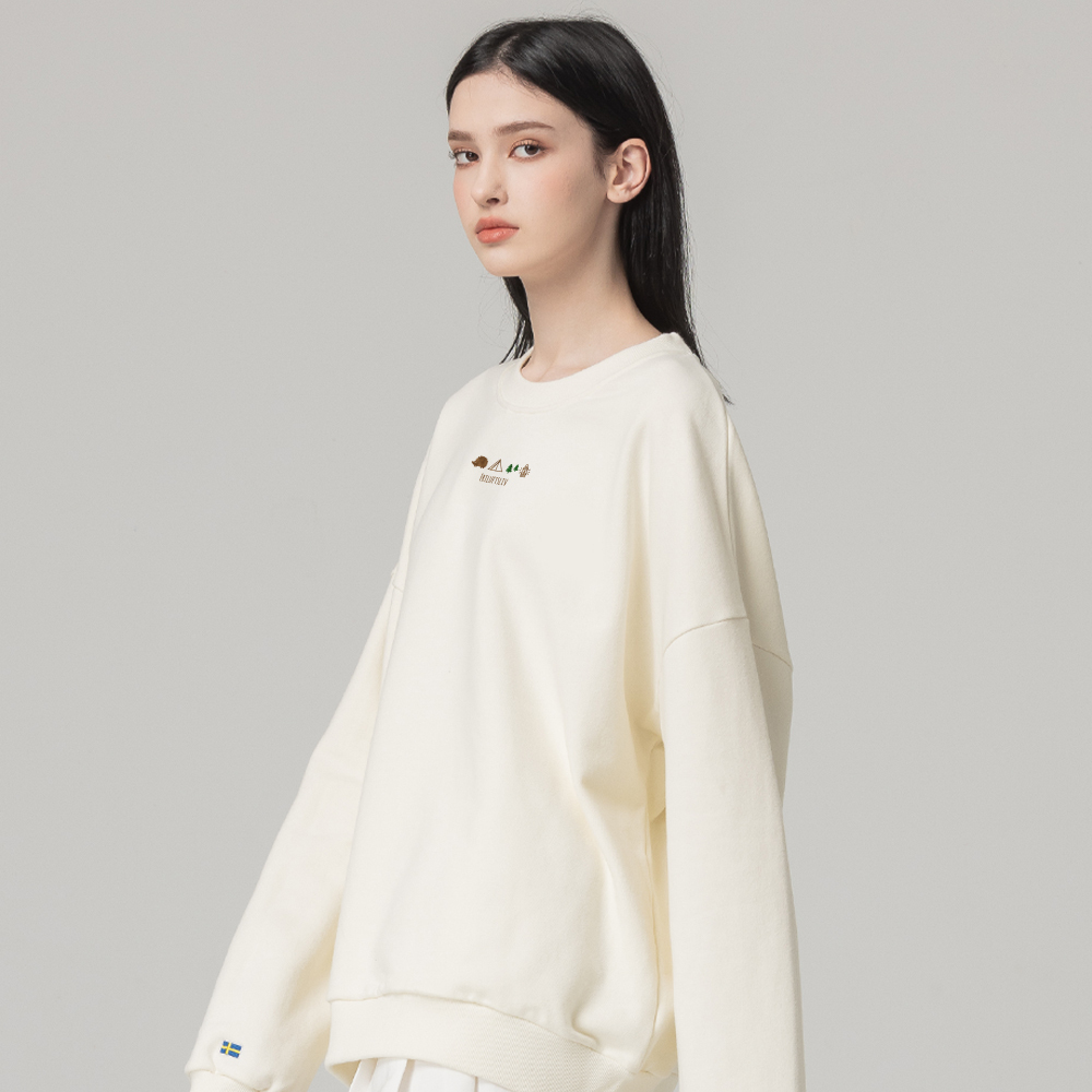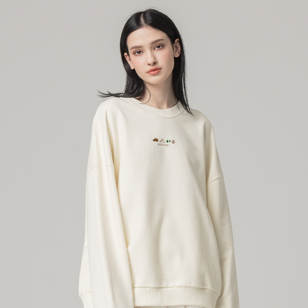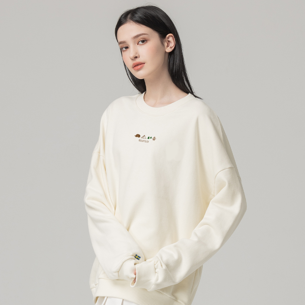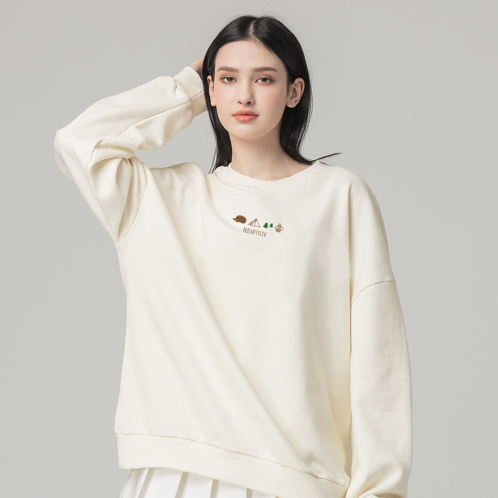 (現貨)SCANDINAVIAN FOREST北歐小刺蝟-露營刺蝟電繡雙面磨毛純棉大學T-奶油白